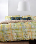 Inspirado no encanto solarengo das paisagens do sul, o jogo de capa de edredão Tavira combina tons refrescantes de amarelo, azul e verde num padrão de quadrados refinado.